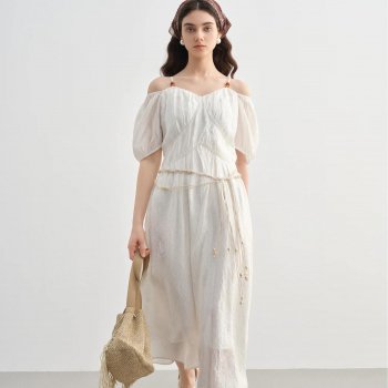 Summer Plus-Size French Style A-Line Dress with Puff Sleeves