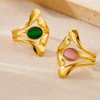 Adjustable 18K Gold Plated Stainless Steel Ring with Natural Stone