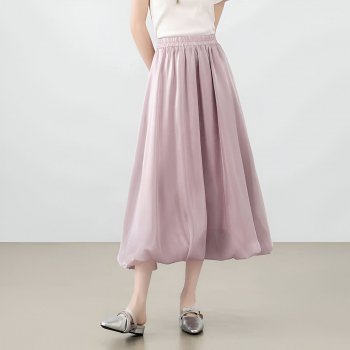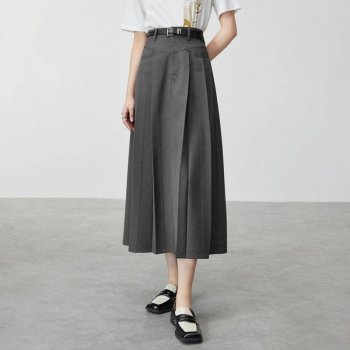 Autumn Pleated A-Line Long Skirt for Women – Casual Comfort Mid-Calf Skirt