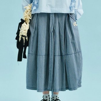 Artistic Plaid Cotton A-Line Lantern Skirt with Pockets